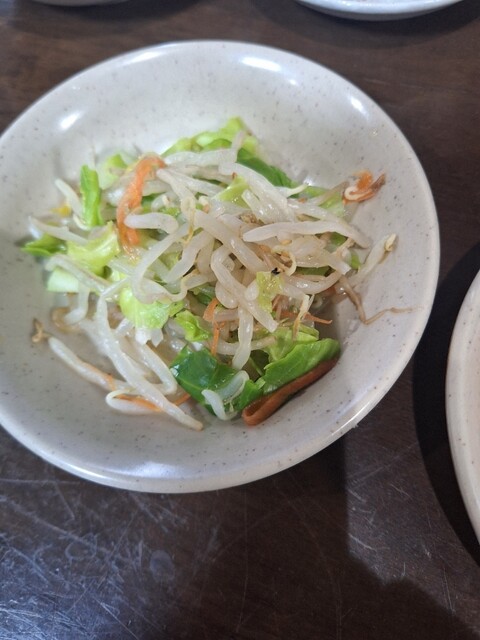 もやしナムル、人参とキャベツも入っていて滑らかでまろやかな味わいでした。