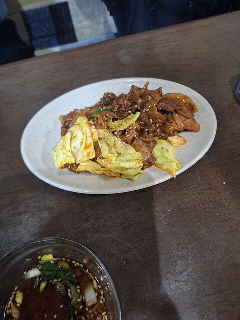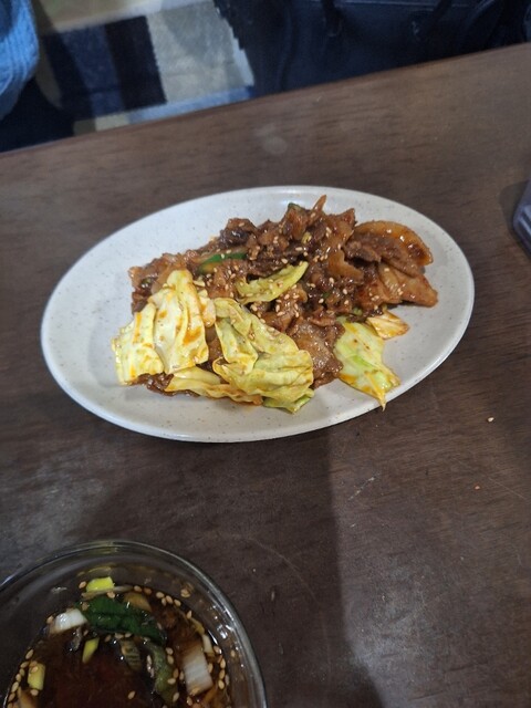 豚の甘辛炒めがきました。豚肉はモッチリ、キャベツはシャキシャキで甘めな味わいです。白ごまが散りばめられています。
