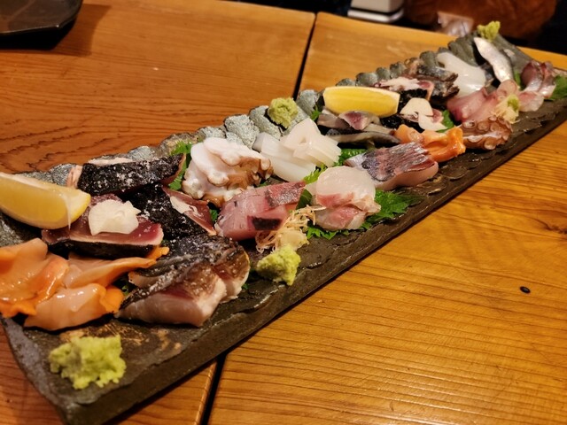 その日に上がった瀬戸内の新鮮魚貝類を使い、日替りで旬の味をご提供。大将オススメの仕入でわかる「日替りメニュー」はお刺身、揚物などを格安で楽しめてメニューも豊富。また、コース料理(2h飲放題付)も人気で各種ご宴会にも最適。 店内は、大将との会話も楽しめるカウンター席、掘りごたつ式の座敷、完全個室座敷(10名様まで)もあり、様々なシーンでご利用可能。また全国から取り寄せた焼酎、日本酒もメニュー豊富。