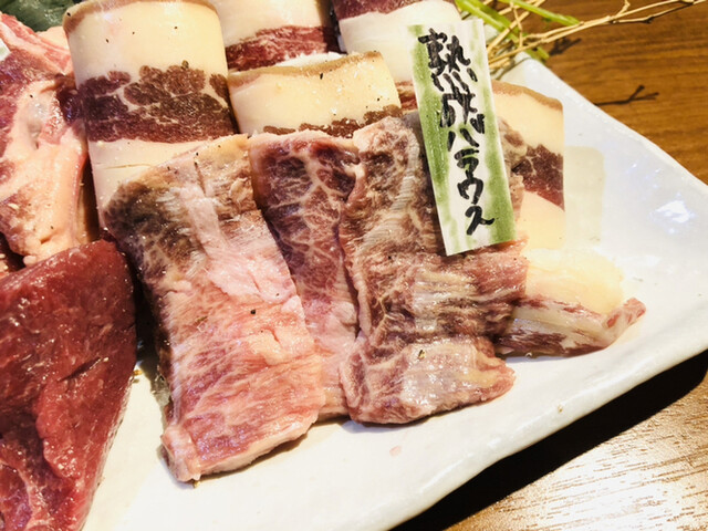 熊本直送の新鮮な馬肉をつかった馬刺しや馬焼肉を存分にお楽しみ頂けます。初めての体験→バラ肉を『刺身』『焼き』共に部位ごとに食す。歯ごたえ、旨み、甘味違いが分かります。こんなにも馬肉が美味しかったなんて。肉通、食通の方是非ご来店ください。 焼き方にもこだわりがあり、溶岩石焼きと伊賀陶板焼きの2種類から選べます。溶岩石焼きは馬肉をふっくらと焼き上げ絶妙な焼き加減に仕上げてくれます。また伊賀陶板焼きはさ...っと炙ってレアで食べるのが常識。さくっと食べたい方むけです。馬肉は美容と健康にも絶大なる効果を発揮します。≪健康≫≪美容≫の魅力を存分にご堪能ください。★☆