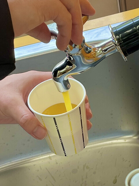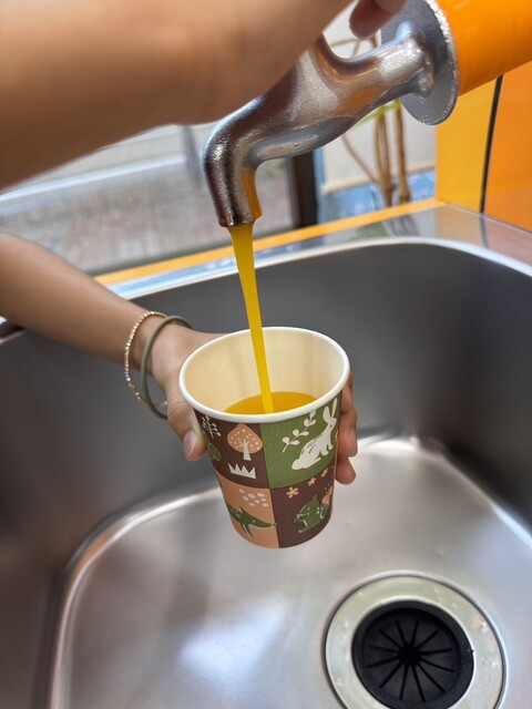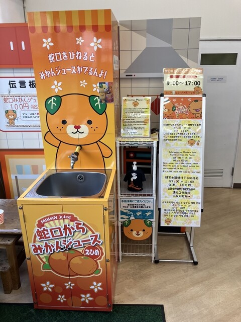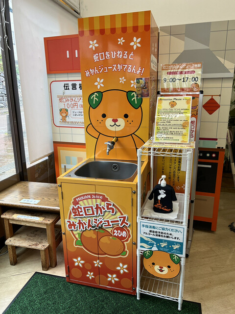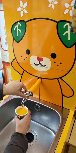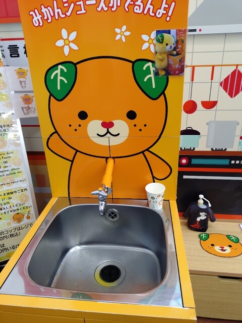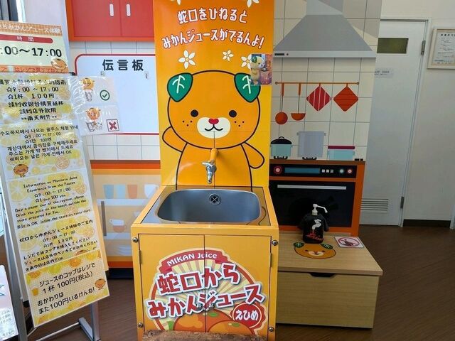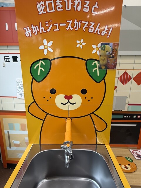 こちらでは、蛇口からミカンジュースが飲めます!