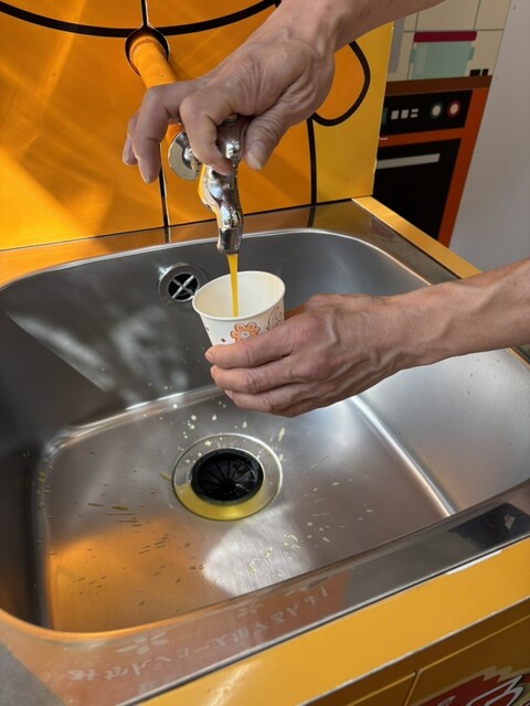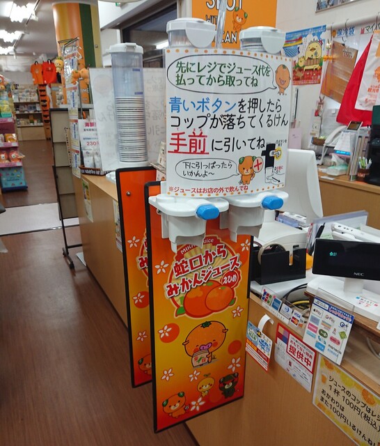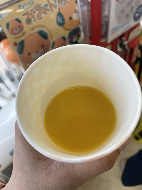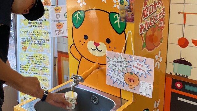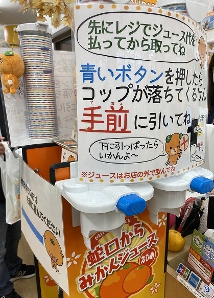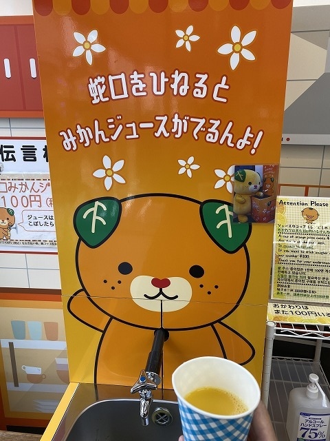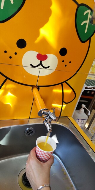 そして、少し前に話題となった、蛇口をひねると出るみかんジュースを体験できます。こちらでは、紙コップ1杯1...