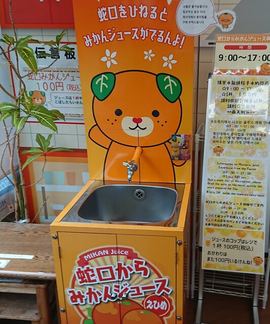 愛媛に来たら、これでしょ!という蛇口からみかんジュースを体験しに観光物産館に。