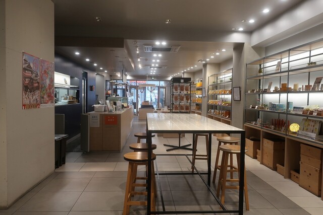 奥にカフェスペースがありトイレも完備されています。