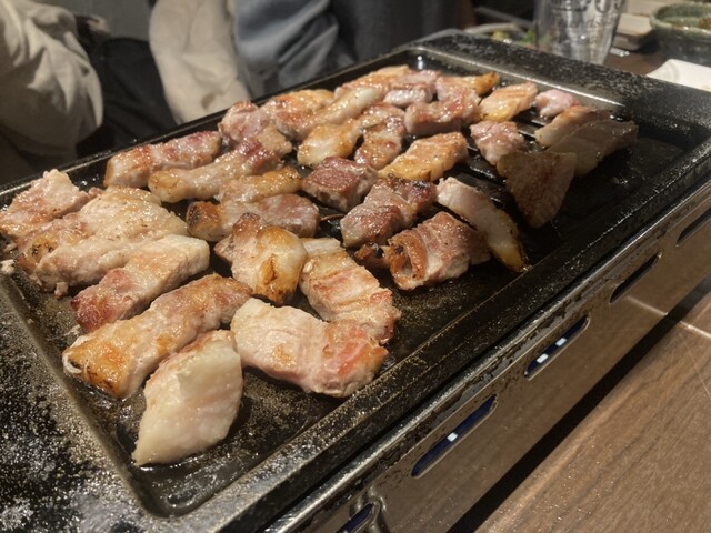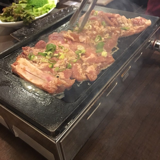 サムギョプサルが分厚くて美味しいです。LINEで友達登録するとサンチェが食べ放題。