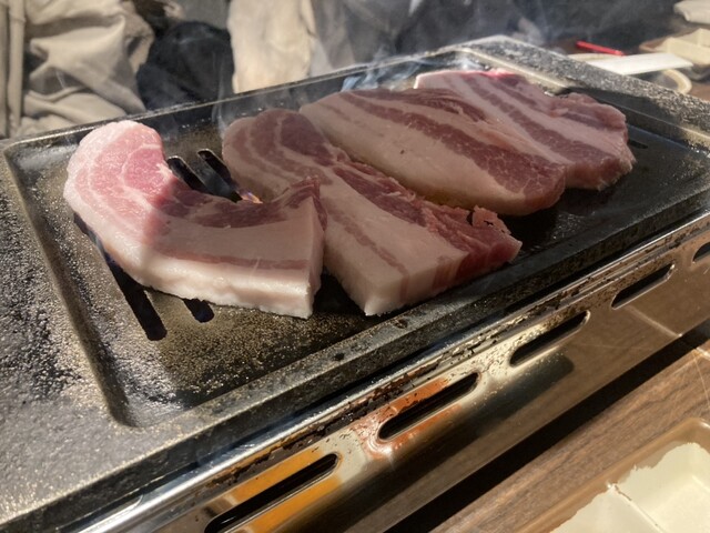 生のサンギョプサルが食べられる。