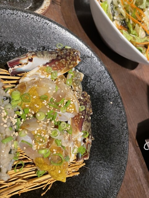 生臭さは一切無く、ワタリガニの身の甘み、とろけるような柔らかさが生姜、ニンニクと一緒に漬けた醤油ダレと...