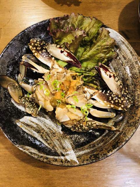 3日前から漬け込まれた国産ワタリガニは程よい醤油味にカニの甘みが加わって...