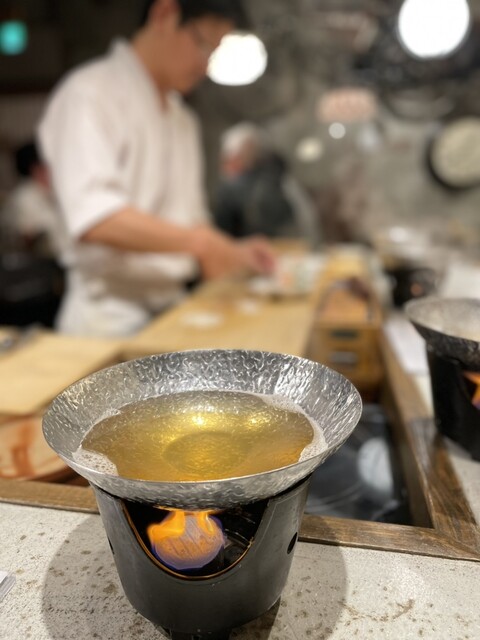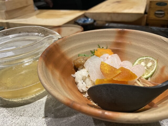 出汁茶漬けのお店だけど、鱧料理のお店。 オープンキッチンどころか目の前で全ての所作が見れます。丁寧な仕事で食欲が駆り立てられる。 ハモといえば骨切りが当たり前だけどここでは違う。 食感、味が全然違うことは想像できるけど、どんな感じか期待が膨らむ。 ハモは骨が多くてしかも骨がY字になっ... 詳細を見る