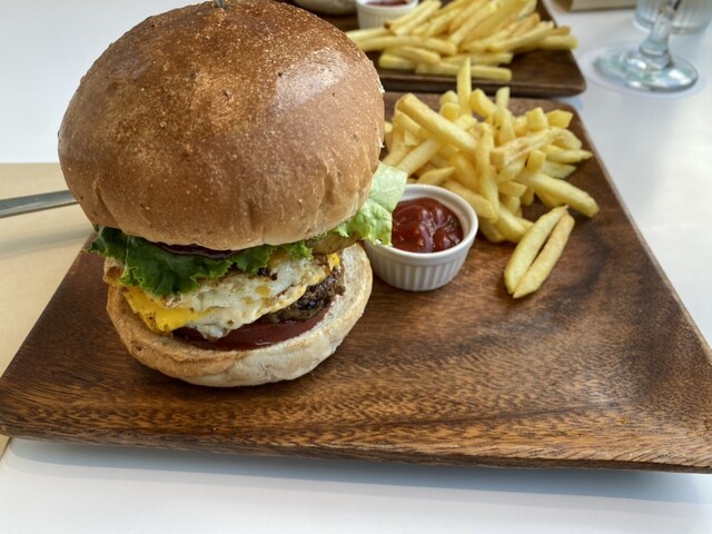 刻一刻と変わっていく海と空の美しさに魅せられつつ、地産地消を大切にしたおいしさに舌鼓を打てる【Cafe Grandee】。女子会やデートなどにもお誂え向きです。店内は天井が高く、ホワイト×ブルーを基調としたオシャレな空間。ボックスタイプのテーブル席やカウンター、オープンエアーなテラス席も備わっています。オススメのサンセットを眺めつつ、素敵なひと時を満喫してみてはいかがでしょう。