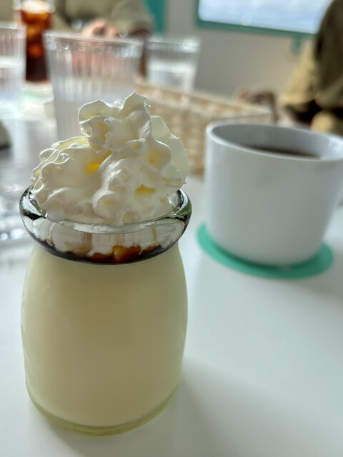 ケーキの入ったショーケースがカウンターにあり、そこにプリンも入っていました。