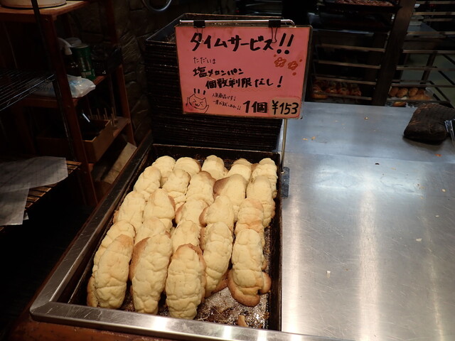 駐車場は広いのですが、日曜日の7時半で8割以上埋まっていて人気のほどがうかがえます。お客さんのお目当ては、もちろん1個95円の塩パン。個数制限がないので、10個以上購入する人が続出。