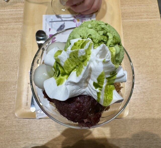 エミフルに寄ったので休憩で立ち寄りました 期間限定の柚子のパフェもあったのですが、定番の抹茶白玉パフェにしました ドリンクはセット価格で330円で追加できるとのことでしたの... 詳細を見る