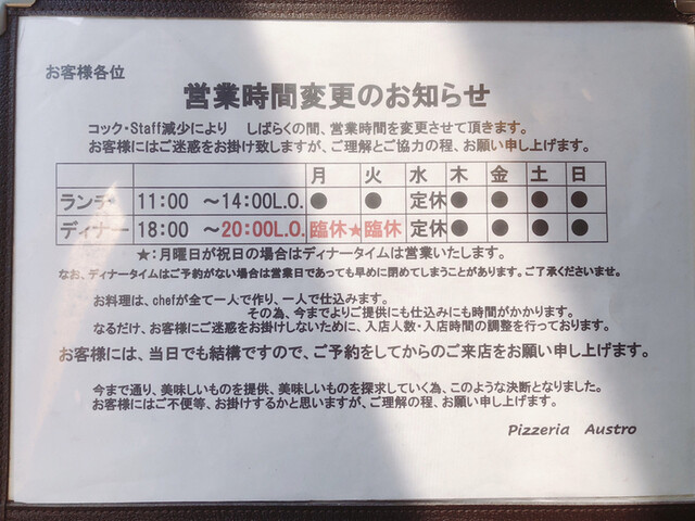 去年も行こうと思っていて満席だったPizzeria Austroさんです。