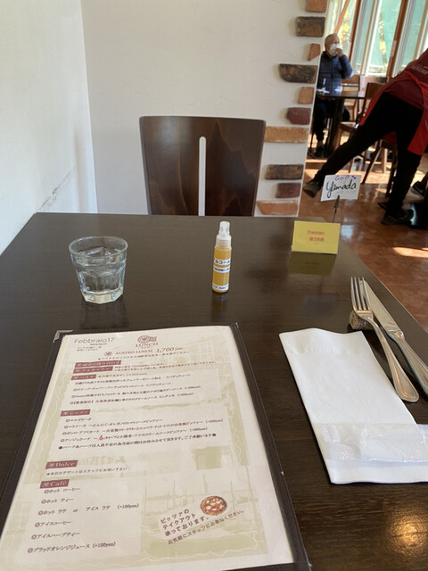 前菜+ピッツァ+ドリンク+ドルチェで1700円です。