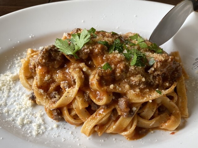 波方町にある【Pizzeria Austro】は、本場イタリアのピッツァが味わえるお店です。イタリア ナポリから取り寄せた薪窯を使って焼くピッツァは、風味も食感も格別。お店で出す料理は、ソースやドレッシングに至るまですべて手作りにこだわっているので、アレルギー除去にも対応可能とのこと。おすすめは、手打ち麺を使った『和牛のボローニャ風ミートソース フィットチーネ』。料理人がイタリアで修行中に学... |