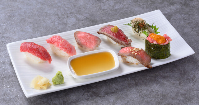 素材を味わう《肉炙り寿司》など
