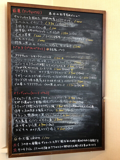黒板に書かれているメニューを
