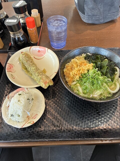 昼過ぎに行きました。店内は賑わっています。 かけうどん大を注文し、セルフのおむすび2個、ちくわ、コロッケを取りました。1,030円でした。 かけうどん大にはセルフのワカ... 詳細を見る