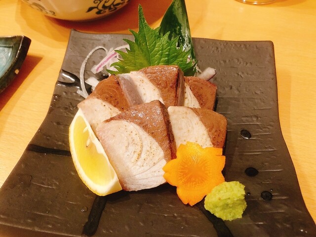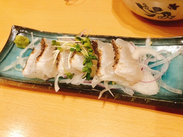 こんかいは、愛媛産真鯛あぶり塩レモン¥850、枝豆¥300、愛媛産ブリ塩タタキ¥1,000、カキフライ¥900、朝どれ若鳥・親鳥のタタキ盛り合わせ¥750、朝どれ鳥刺し¥650、だし巻き玉子¥650、タコ...
