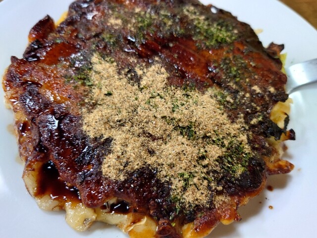 ソースが変わっていてウスターソースに似たソースに、カレーで使うようなスパイスが入り、後味がじんわりスパイシー