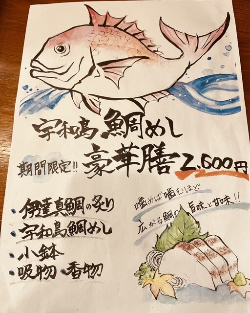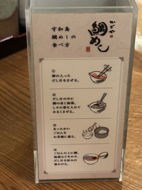 ほづみ亭で鯛めしが気に入ったので,「宇和島鯛めし豪華膳」を注文しようと決めて訪問した。
