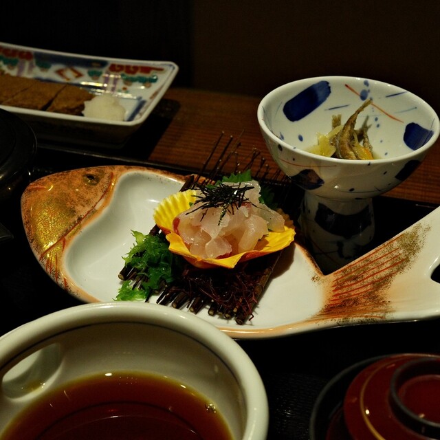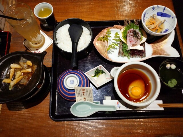 八ツ鹿御前。鯛めしと郷土料理のさつまがメイン。宇和島地方の鯛めしは刺身に出汁?とたまごを混ぜて食べるタイプ。郷土料理であるさつまも美味しく頂きました。その他じゃこ天は温かくマリネも美味しかった。LO ...
