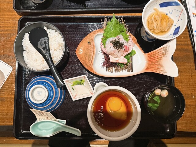 ここのお店の鯛めしはどちらかというと鯛の卵かけご飯みたいなもので、この食べ方初めてですが、面白くて美味しかったです。