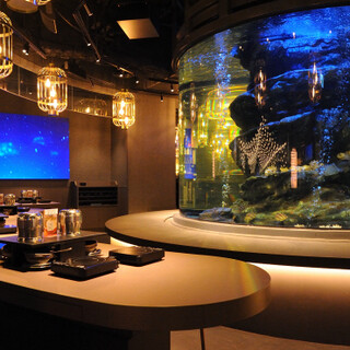 A luxurious space featuring a 20-ton aquarium. Connecting the culture of ama divers with the city.