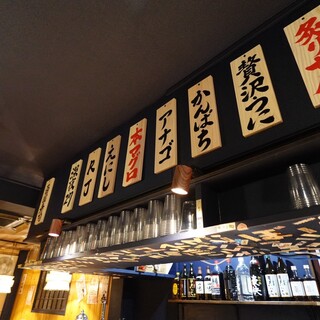 [5-minute walk from Shijo Station and Karasuma Station] Sushi starting at JPY 100 & Japanese sake from JPY 330! A casual standing sushi bar you can easily drop by.