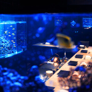 Just a 1-minute walk from GINZA SIX, experience Japan's first Michelin chef supervised gourmet aquarium wrapped in blue.