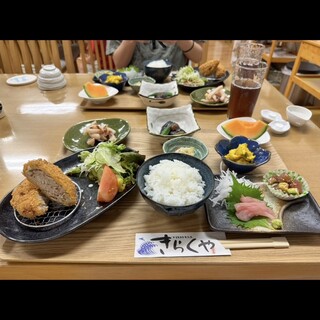 A fisherman's restaurant where you can enjoy the seafood of the Naruto Strait in a hearty way. Recommended dishes include the famous Tai Donburi and the impressive Tai no Ara-daki Teishoku, featuring large pieces with rich flavor.