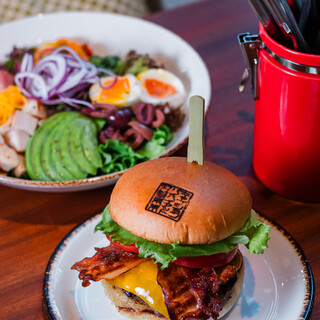 Just a step from Kayabacho Station, enjoy authentic gourmet burgers in a casual American all-day dining space.