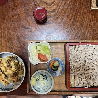 Proudly serving authentic Shinshu soba made in-house, paired with a golden dashi broth!