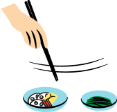 Proper chopstick etiquette is an especially important part of Japanese table manners. When there is a "hashioki" (chopstick rest) provided, lay the tip of the chopsticks on the rest while you take a break from eating. The pictures below illustrate some common chopstick faux pas to avoid -- many of them are related to funeral rituals!
