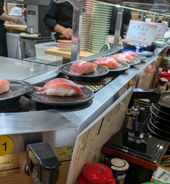 A popular conveyor belt sushi restaurant in Kurume City, Fukuoka.