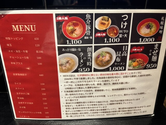 This time, I visited MEN-eiji HIRAGISHI BASE, where I tried the MEN-EIJI-style ramen and the "Mabush...