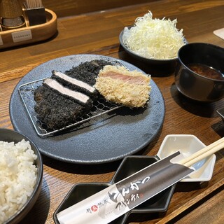 Enjoy two types of tonkatsu, black and white, crafted by a skilled tonkatsu chef in a refined, modern Japanese adult space.