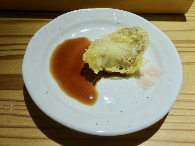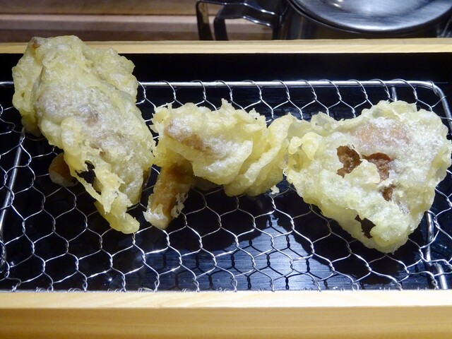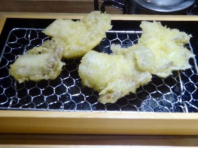 Instead of a platter, I ordered a la carte, and the freshly fried tempura was served one by one, placed on a wooden rack with a wire mesh for oil drainage, which felt quite authentic.