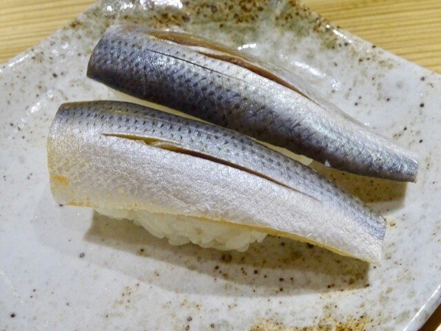 The sushi is brushed with soy sauce, typical of the Kansai style.