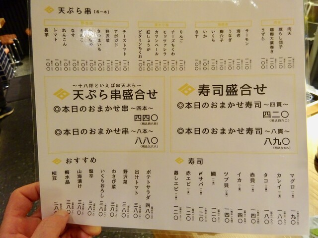 This standing bar, aptly named Tempura and Sushi, is located right in front of Nagano Station.