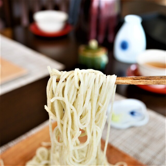 About a 20-minute drive from Iiyama Station in Nagano Prefecture, you'll find a unique soba restaurant nestled in the middle of the North Shiga Highlands, specifically at the base of the Ryuo Ski Park..., open only during the off-season. The restaurant uses carefully selected buckwheat sourced from a local rice farmer in Toyama Prefecture, with whom the owner has collaborated for over 20 years to refine the variety. The exceptional flavor is so good that it attracts enthusiasts from afar. Enjoy a delightful soba course featuring hand-ground soba dumplings, freshly made soba noodles, and stone-baked soba pizza, all while taking in the serene scenery.