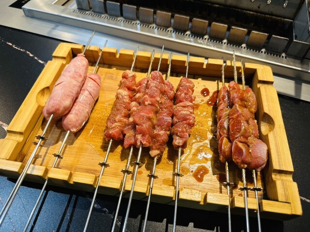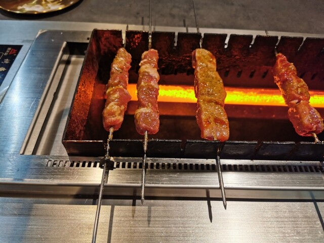 The "Rotating Skewers" feature a special infrared heating grill at each table that cooks skewers healthily while rotating automatically right before your eyes. Enjoy the fun of watching as all skewers... are freshly made in-house each day, ensuring top-notch freshness.