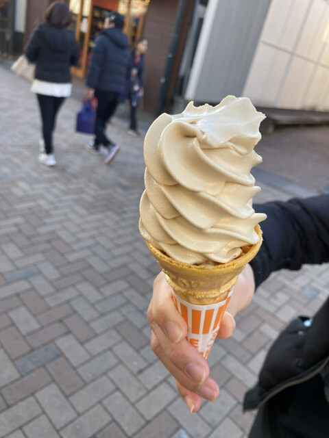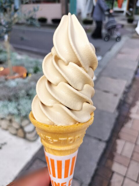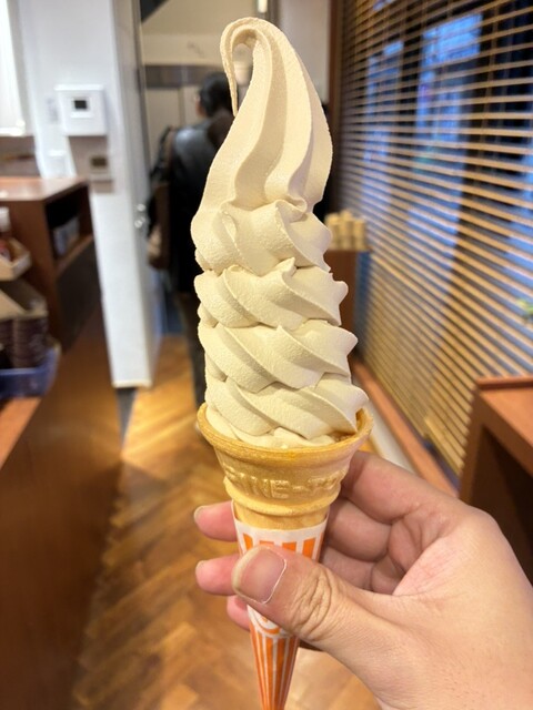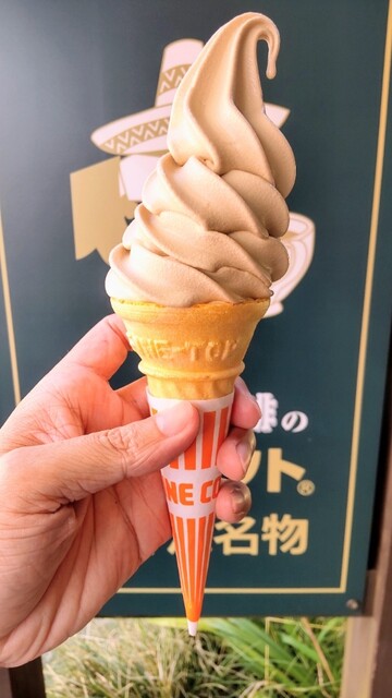 I ordered the Mocha Soft Serve (in a cone) at Mikado Coffee.