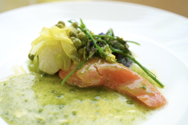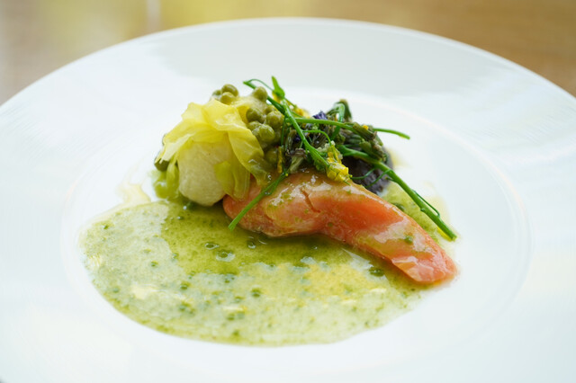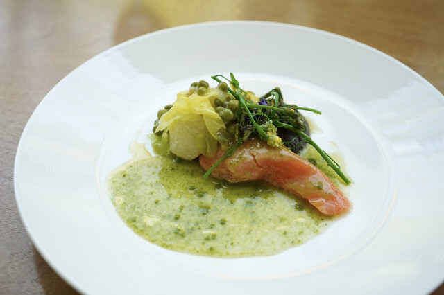 You can choose your favorite for the main course. I selected the Shinshu salmon, which had a slightly raw flavor due to the low-temperature confit, and the rich umami of the salmon filled my mouth. It was incredibly delicious.