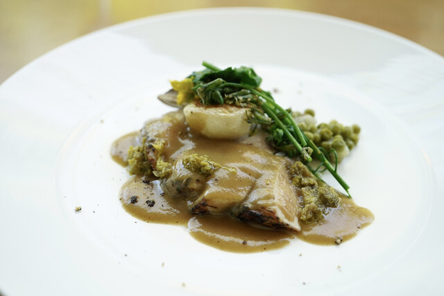 A cozy interior filled with the warmth of nature. Enjoy French cuisine made with seasonal ingredients that change with the seasons.