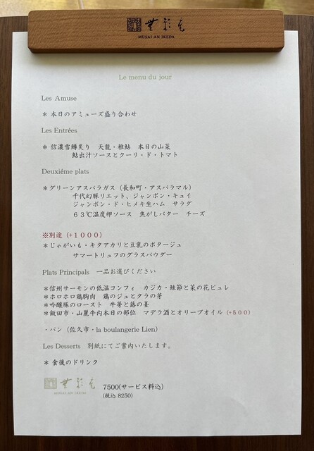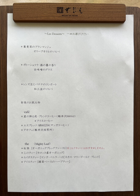 Step into an extraordinary space that feels like being in the heart of a forest. At "Musai-an Ikeda," you can savor exquisite French cuisine while experiencing the changing seasons. The chef carefully selects vegetables from producers whose faces you can see, ensuring a personal touch in every dish. Each plate is a delightful combination of ingredients born from interactions with these producers, showcasing a playful spirit. |