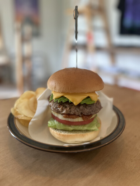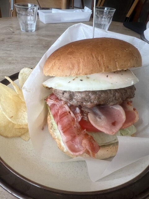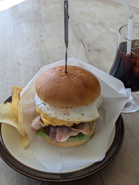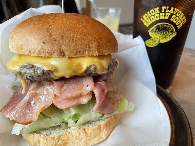 The Bacon Egg Cheese Burger is JPY 1,800, and with an iced coffee set, the total comes to JPY 2,200....