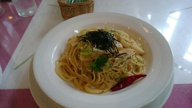メインのパスタ・・・白ねぎのぺペロンチーノ(by うえちまちゃん)