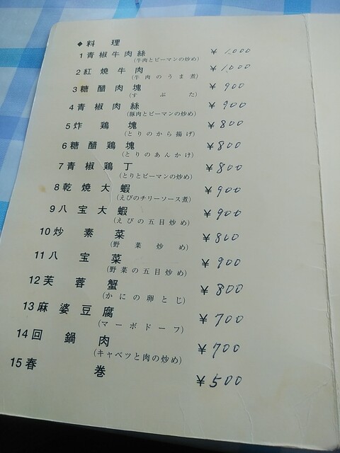 Heading from Nagano, you’ll find an old Chinese restaurant around the intersection leading to Nakakaruizawa. I've been curious about it but never entered. After following my friend’s car for lunch, we pulled in. The green roof and the green sign "Ryugu" felt quite surreal, and I couldn’t help but think, "Shouldn’t that be orange or red!" It’s needless to say, I pointed that out to myself in silence. Upon entering, it was hard to tell if I was welcomed or not, but I gathered myself and took a seat at the table. Apparently, they don’t have lunch specials. I chose the chicken noodle soup from the menu, referring to it as "Chī Sū Tānmen," but the lady at the counter replied, "So, chicken ramen, right?" While she was correct, the name didn’t fully capture it.